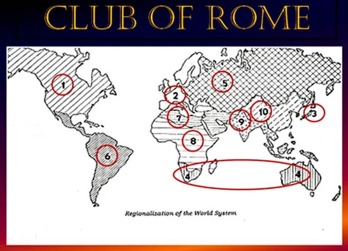 In order to reach a conclusion, I am going to use public information available from many years ago, referring to the Club of Rome meeting of 1973 and the proposed map they presented as a possible division of the world. I found two maps,